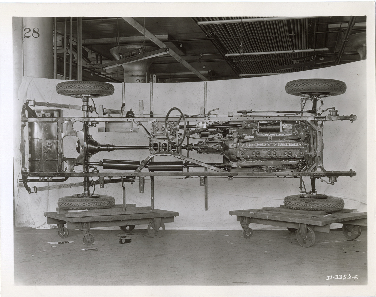Favorite this☆ Chassis, 1933 Hudson automobile Description: View of the chassis for a 1933 Hudson Standard 8 Series T car. Handwritten on back: "March 16/33. T. Hudson Standard 8 chassis, top view." Details Resource ID: na046766 Subject: Automobiles--Chassis Hudson automobile Photographic prints Date Issued: 1933-03-16 Format: 1 photographic print mounted on fabric ; 8 x 10 in. Member of: National Automotive History Collection Filing Location: Hudson, 1933 #15 Rights: Physical rights are retained by DPL. Copyright is retained in accordance with U.S. copyright laws.