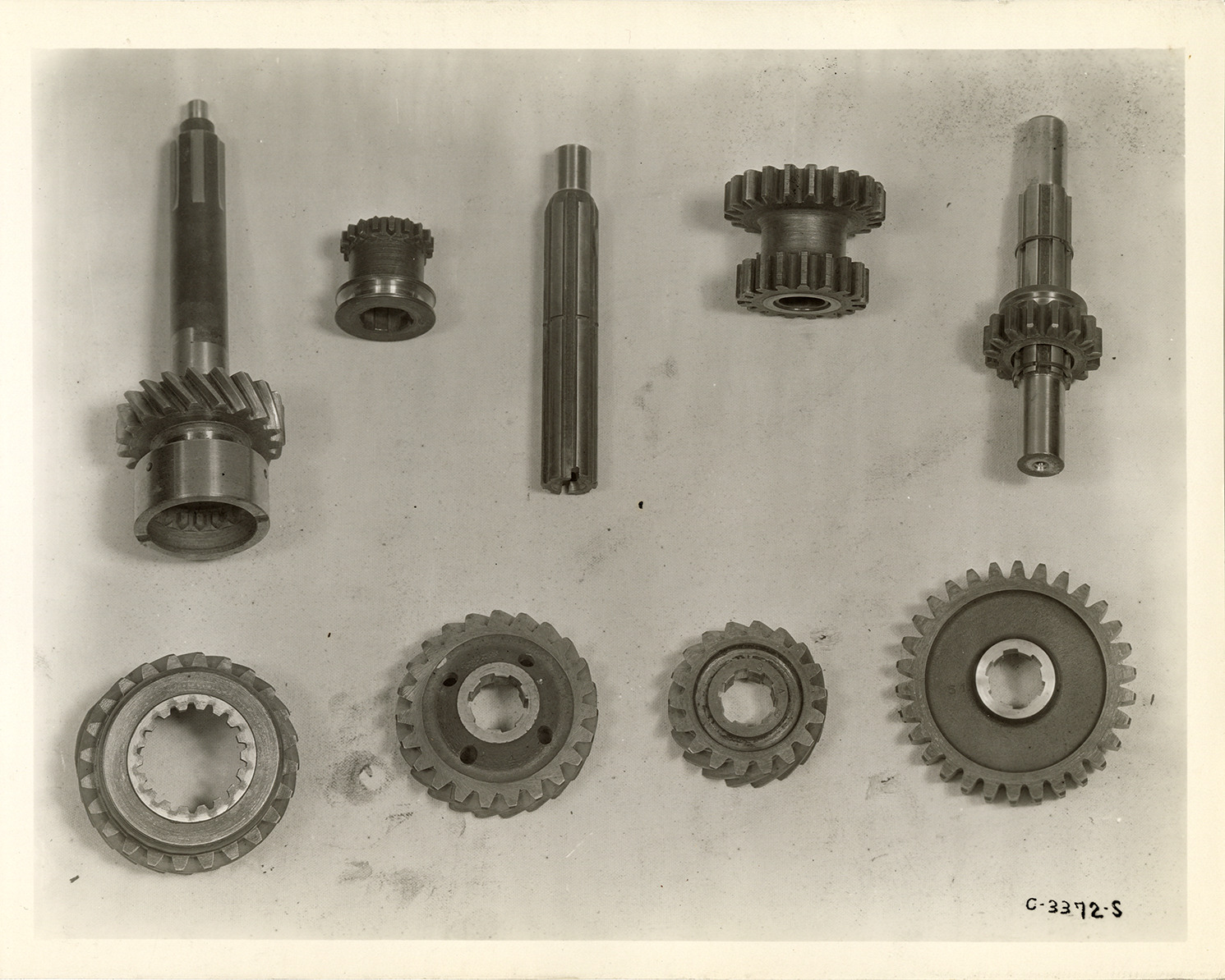 Favorite this☆ Transmission gears, 1933 Essex Terraplane automobile Description: View of the transmission gears for 1933 Essex Terraplane 6 and 8 Series K and KT cars. Handwritten on back: "2-28-33. Model K & KT (Terra. 6 & 8) transmission gears." Details Resource ID: na046807 Subject: Automobiles--Transmission devices Gearing Hudson Motor Car Company Photographic prints Date Issued: 1933-02-28 Format: 1 photographic print mounted on fabric ; 8 x 10 in. Member of: National Automotive History Collection Filing Location: Hudson, 1933 #17 Rights: Physical rights are retained by DPL. Copyright is retained in accordance with U.S. copyright laws.