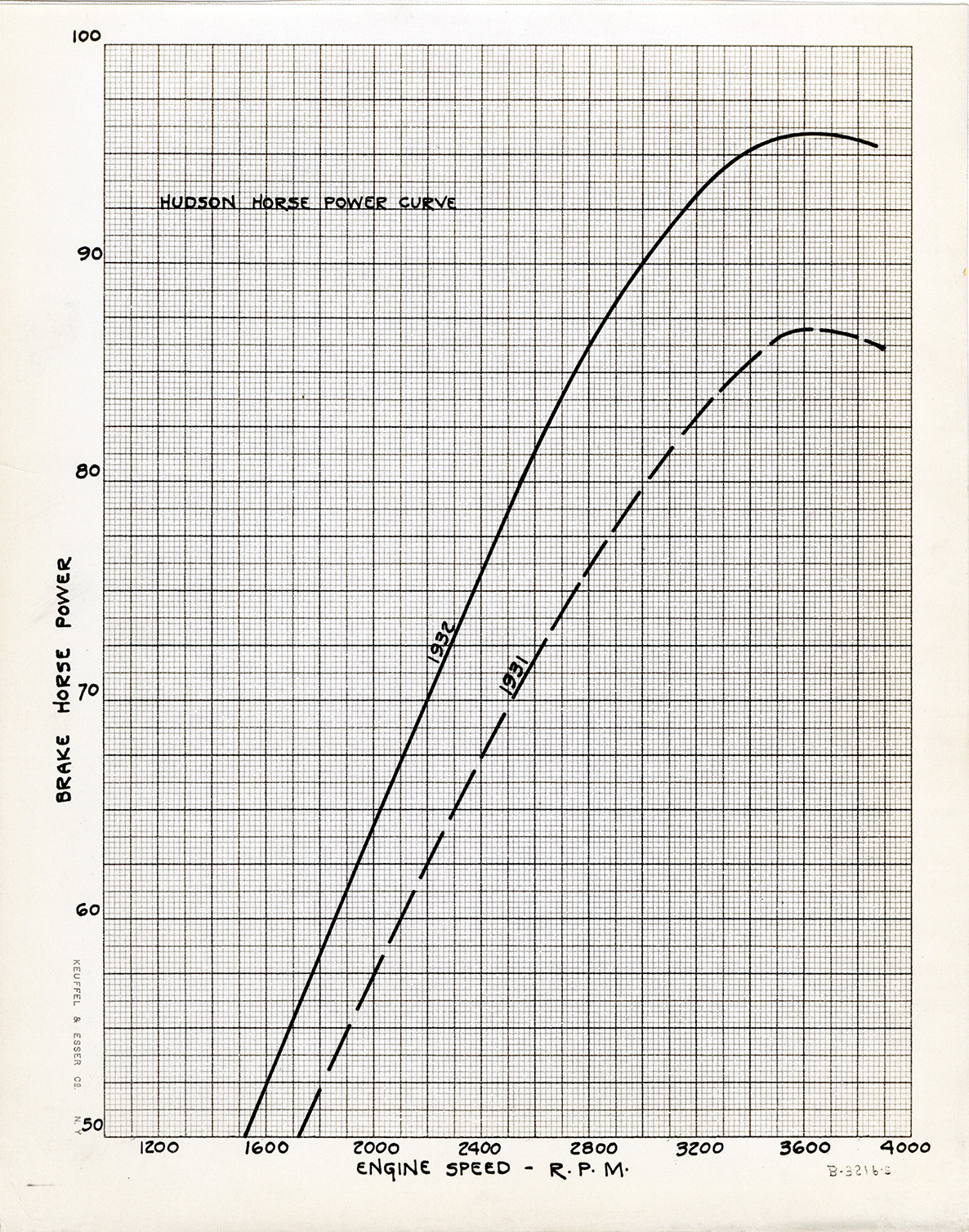 Favorite this☆ Power curve comparison for 1931 and 1932 Hudson automobiles Description: Power curve comparison for 1931 and 1932 Hudson cars. Handwritten on back: "Oct. 10/31. Copy negative of chart showing 1932 & 1931 Hudson horse power curve comparison." Details Resource ID: na046847 Subject: Horsepower Automobiles Hudson Motor Car Company Photographic prints Date Issued: 1931-10-10 Format: 1 photographic print mounted on fabric ; 10 x 8 in. Member of: National Automotive History Collection Filing Location: Hudson, 1932 #1 Rights: Physical rights are retained by DPL. Copyright is retained in accordance with U.S. copyright laws.
