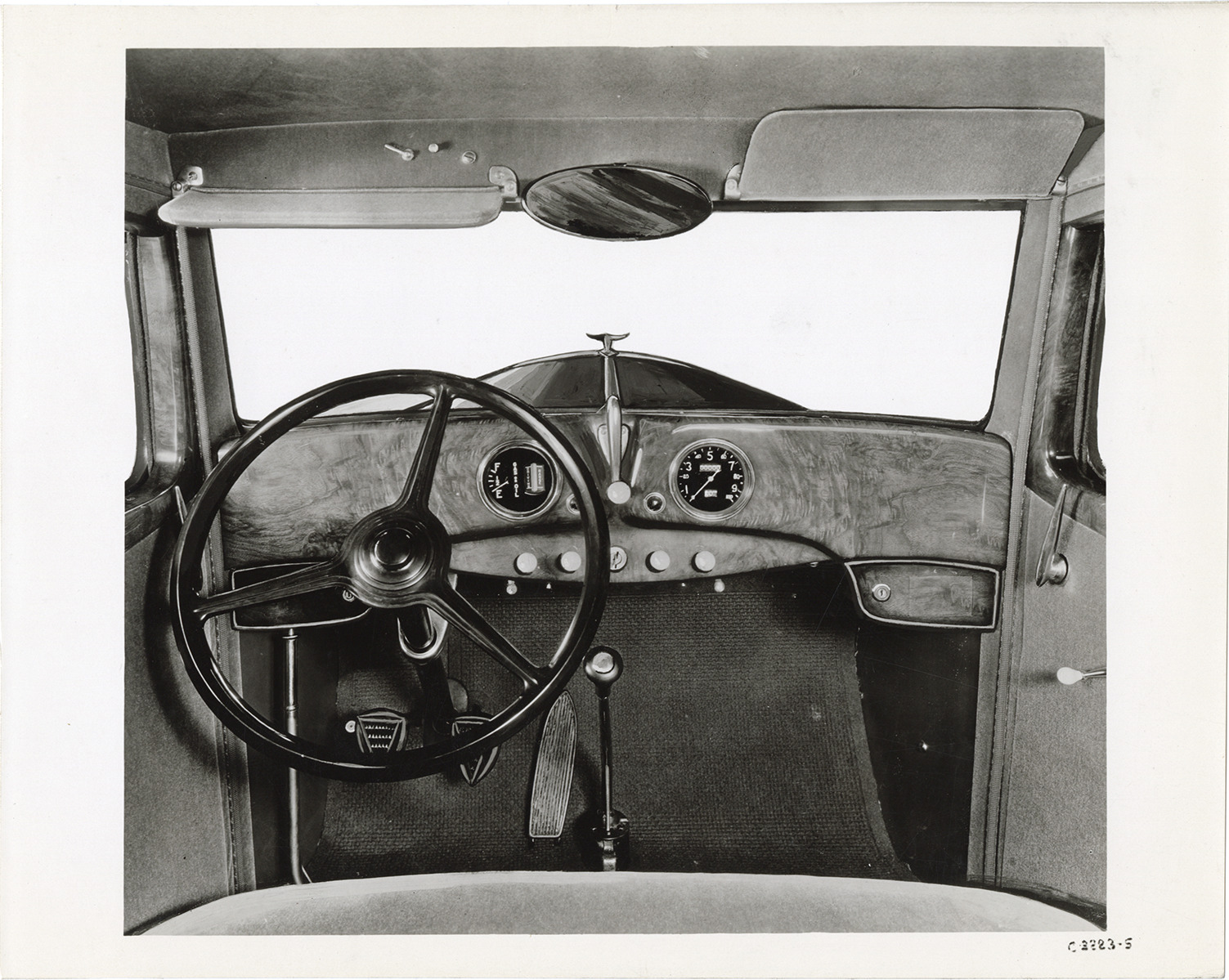 Instrument panel and steering wheel, 1932 Hudson automobile