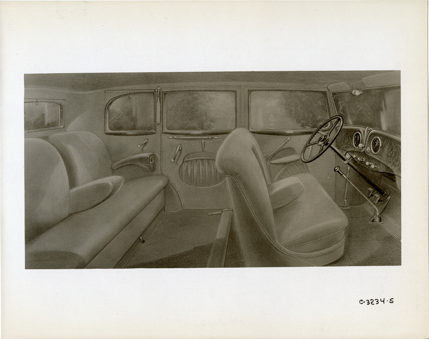 Favorite this☆ Interior, 1932 Hudson automobile Description: Artist's depiction of the interior of a 1932 Hudson Special sedan, showing front and rear seats. Handwritten on back: "Nov. 20, 1931. Copy neg. (crayon) drawing Hudson sedan interior." Details Resource ID: na046868 Subject: Automobiles--Interiors Automobiles--Seats Hudson automobile Photographic prints Date Issued: 1931-11-20 Format: 1 photographic print mounted on fabric ; 8 x 10 in. Member of: National Automotive History Collection Filing Location: Hudson, 1932 #2 Rights: Physical rights are retained by DPL. Copyright is retained in accordance with U.S. copyright laws.