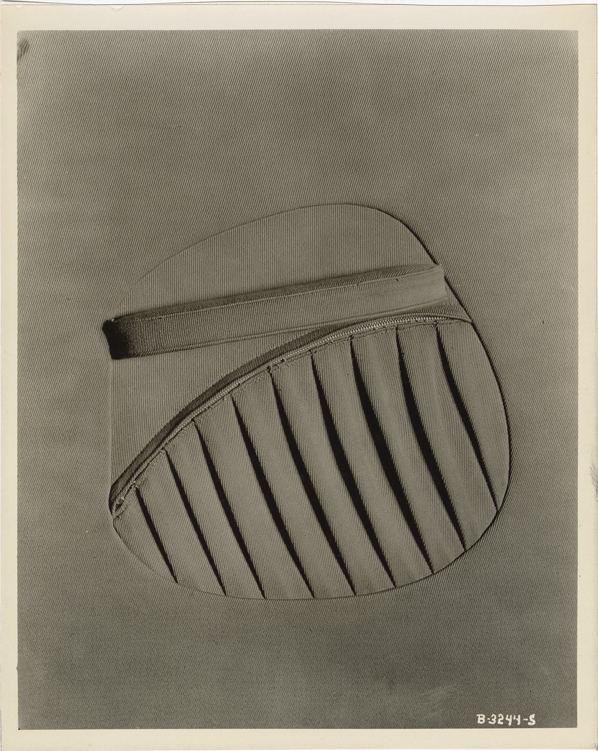 Close-up view of a zippered pocket, 1932 Hudson car. Handwritten on back: "Oct. 14/31. Showing zipper equipped pocket (not complete)."