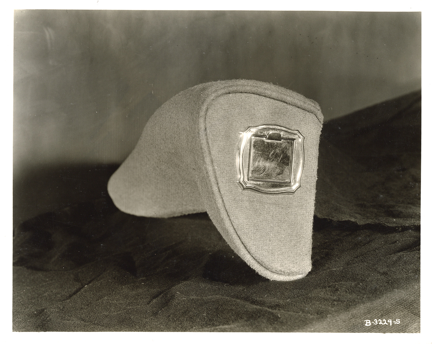 Close-up view of the armrest and ashtray for 1932 Hudson and Essex Terraplane cars. Handwritten on back: "Oct. 12/31. Hudson-Essex. Ash tray in arm rest. Change escutcheon plate. See # B3219 & B3220."