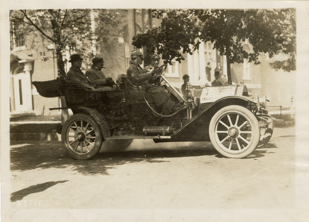 Favorite this☆ Motorists in 1910 Pierce-Racine automobile Description: View of motorists in a 1910 Pierce-Racine car during an unidentified reliability contest. Handwritten on back: "Pierce-Racine, 1910." Details Resource ID: na046989 Subject: Automobiles Pierce Engine Company Photographic prints Date Issued: Unknown year Format: 1 photographic print ; 5 x 7 in. Member of: National Automotive History Collection Filing Location: Pierce-Racine Rights: Physical rights are retained by DPL. Copyright is retained in accordance with U.S. copyright laws.