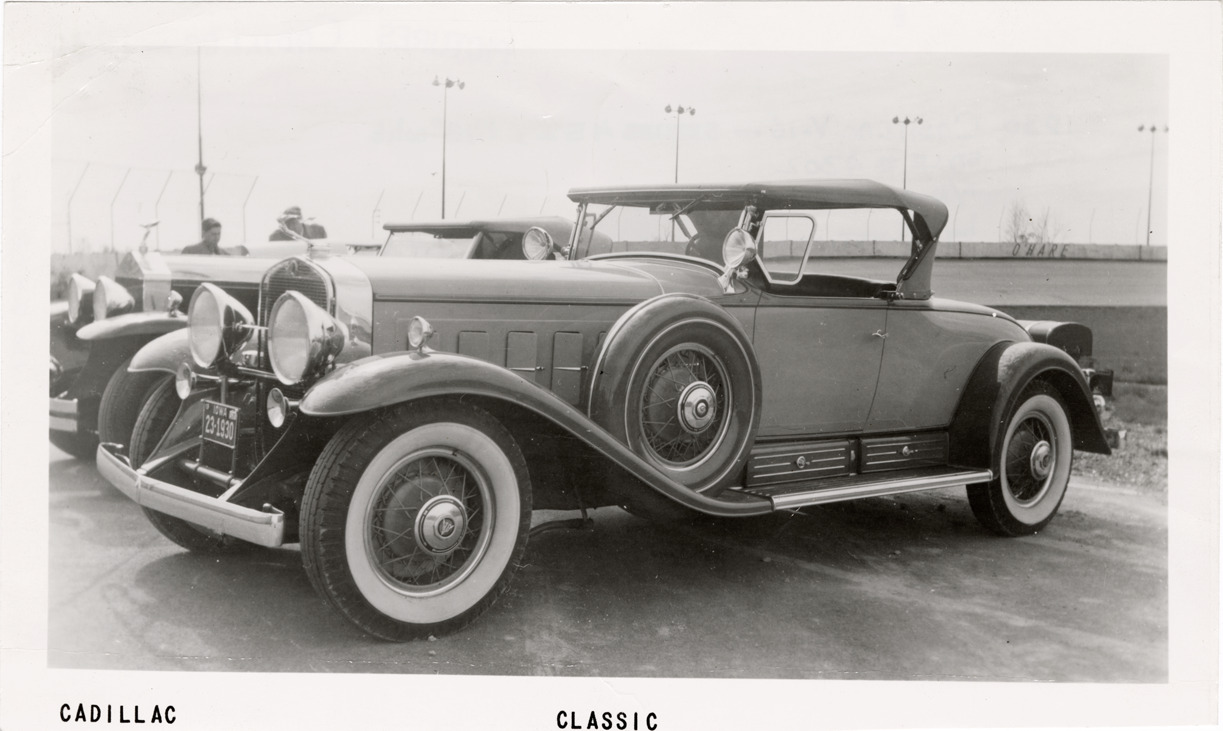 Favorite this☆ 1930 Cadillac automobile Description: View of a 1930 Cadillac V-16, Series 452 roadster. Printed on front: "Cadillac classic." Handwritten on back: "1930 Cadillac V-16, Series 452, 148" whb. Style #4302. 2/4-p roadster by Fleetwood." Details Resource ID: na047012 Subject: Cadillac automobile Photographic prints Date Issued: Unknown year Format: 1 photographic print ; 5 x 8 in. Member of: National Automotive History Collection Filing Location: Cadillac, 1930 Rights: Physical rights are retained by DPL. Copyright is retained in accordance with U.S. copyright laws.