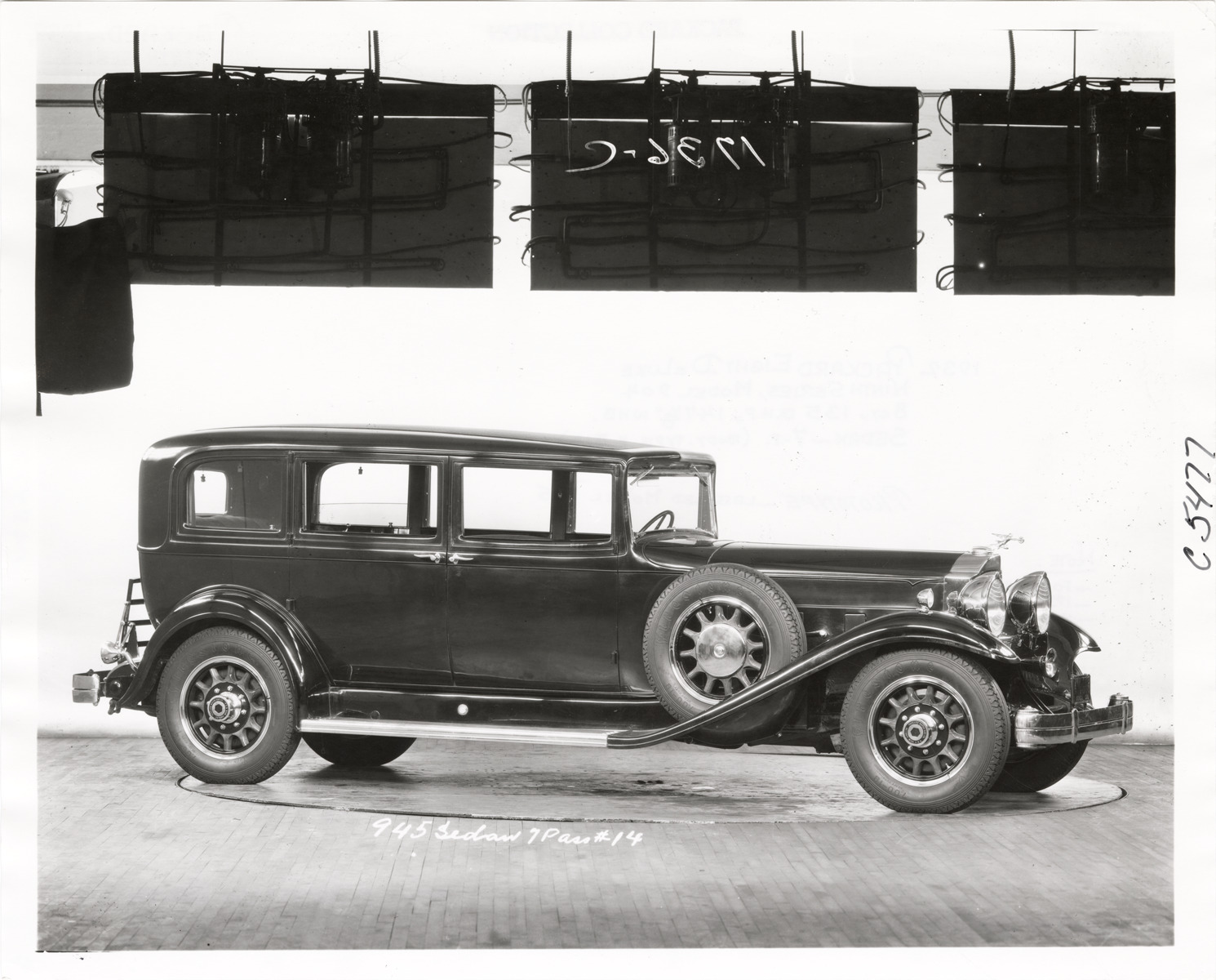 Favorite this☆ 1932 Packard automobile Description: View of a 1932 Packard, Ninth Series, Deluxe Eight, Model 904 sedan. Printed on front: "945 sedan, 7 pass. #14." Handwritten on back: "Packard, 1932. Ninth Series, Eight Deluxe, Model 904. 1932 Packard Eight Deluxe. Ninth Series, Model 904. 8 cy., 135 b.h.p., 147 1/8" whb. Sedan, 7-p. Body-type #514. Prototype, labeled model 945. Note: Forward position of fender well (Eighth Series, Model 840, front fender?). 1931 Michigan license plate #416.608. Non-production radiator shell (chromium-plated center vertical bar)." Details Resource ID: na047034 Subject: Packard automobile Photographic prints Date Issued: 1931-10-22 Format: 1 photographic print ; 8 x 10 in. Member of: National Automotive History Collection Packard Collection Filing Location: Packard, 1932. Ninth Series. Eight Deluxe. Model 904, #1 Negative Number: 1736-C Rights: Physical rights are retained by DPL. Copyright is retained in accordance with U.S. copyright laws.