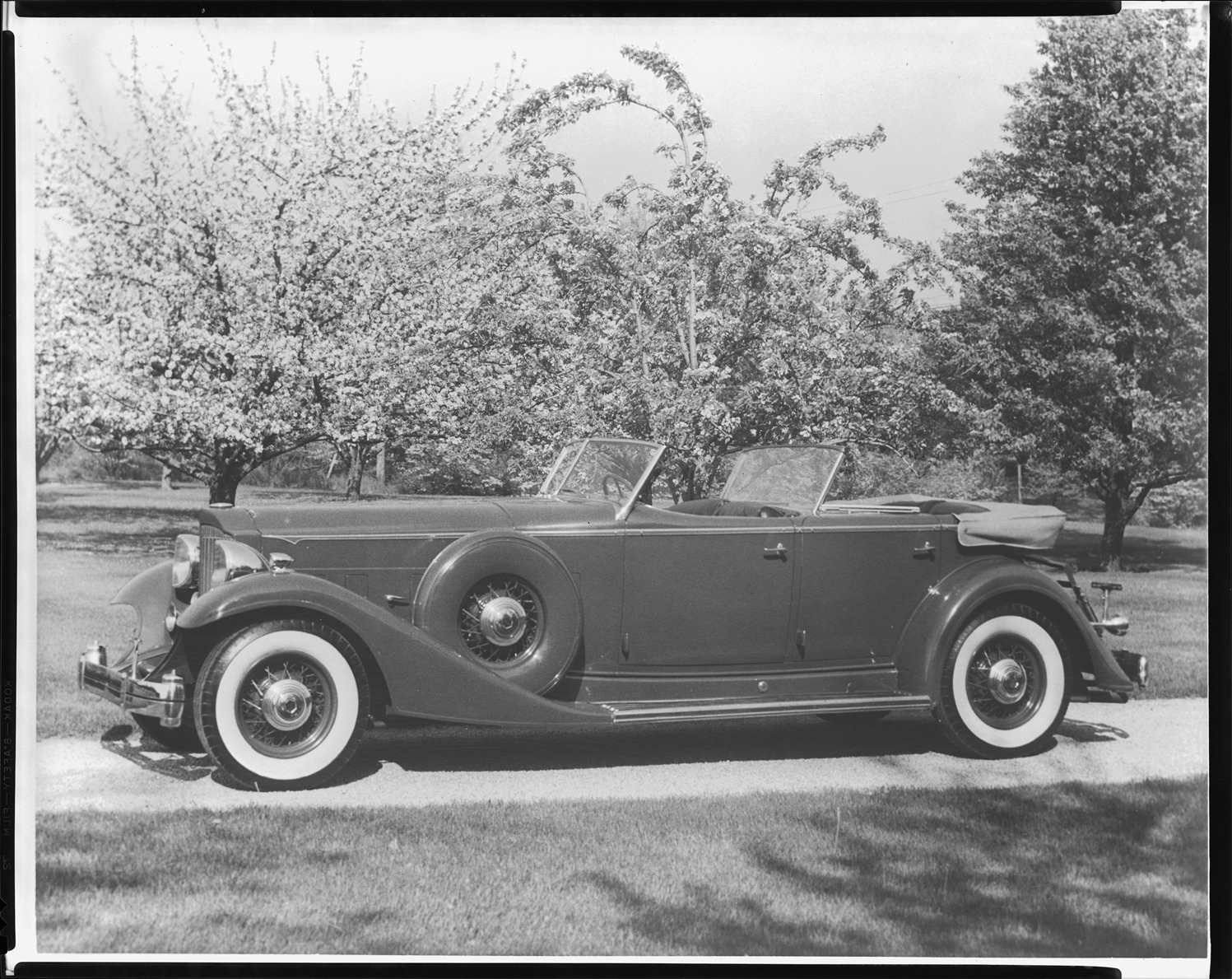 Favorite this☆ 1933 Packard automobile Description: View of a 1933 Packard sport phaeton, with body by Dietrich. Handwritten on sleeve: "Packard, 12 cy., '33. Sport phaeton, Dietrich. Cunningham's." Details Resource ID: na047106 Subject: Packard automobile Photography--Negatives Format: 1 negative ; 8 x 10 in. Member of: National Automotive History Collection George Moffitt Photograph Collection Filing Location: Packard Rights: Physical rights are retained by DPL. Copyright is retained in accordance with U.S. copyright laws.