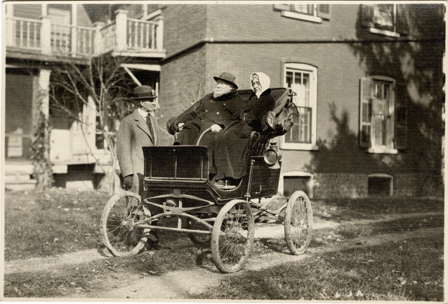 Henry Ford and Mr. and Mrs. Ralzemond A. Parker posing with Locomobile automobile, Royal Oak, Michigan