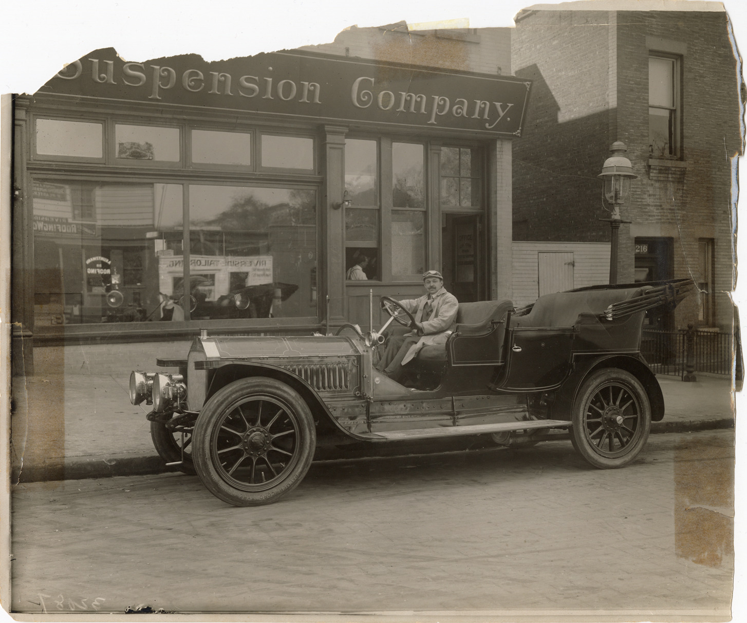 Motorist posing in Thames automobile