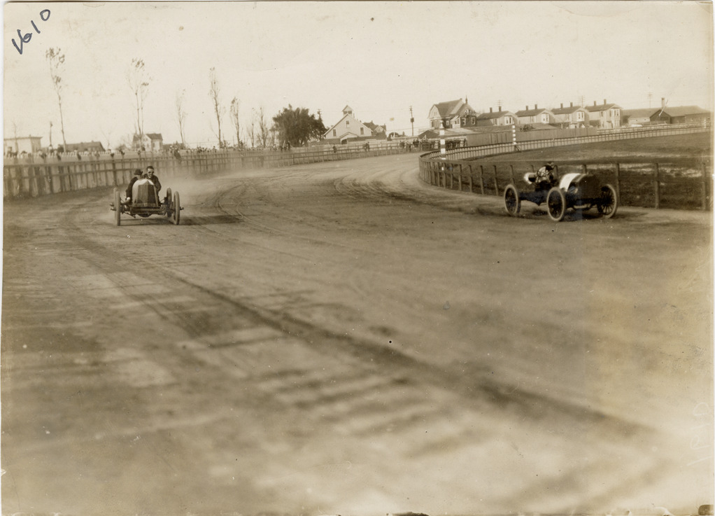 Favorite this☆ Barney Oldfield in Peerless Green Dragon racecar Description: View of Barney Oldfield racing Peerless Green Dragon car on track. Unidentified car on left. Handwritten on back: "Barney Oldfield in Peerless Green Dragon." Details Resource ID: na047206 Subject: Automobiles, Racing Peerless automobile Oldfield, Barney, 1878-1946 Automobile racing drivers Photographic prints Date Issued: Unknown year Format: 1 photographic print ; 5 x 7 in. Member of: National Automotive History Collection Lazarnick Collection Filing Location: General photograph files, Peerless, 1900-1906 Rights: Physical rights are retained by DPL. Copyright is retained in accordance with U.S. copyright laws.