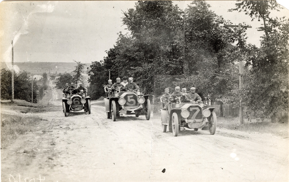Peerless automobiles traveling on rural road Description: View of Peerless cars no. 5, no. 6 and no. 7 traveling on a rural road. Stamped on back: "Spooner & Wells, Inc., photographers, telephones 3472-3473 Columbus, 1931 Broadway, New York." Handwritten on back: "Peerless, c.1908." Details Resource ID: na047220 Creator: Spooner & Wells Subject: Peerless automobile Photographers--New York (State)--New York Photographic prints Date Issued: Unknown year Format: 1 photographic print ; 4.25 x 6.75 in. Member of: National Automotive History Collection Filing Location: Peerless, 1907-1909 Rights: Physical rights are retained by DPL. Copyright is retained in accordance with U.S. copyright laws.