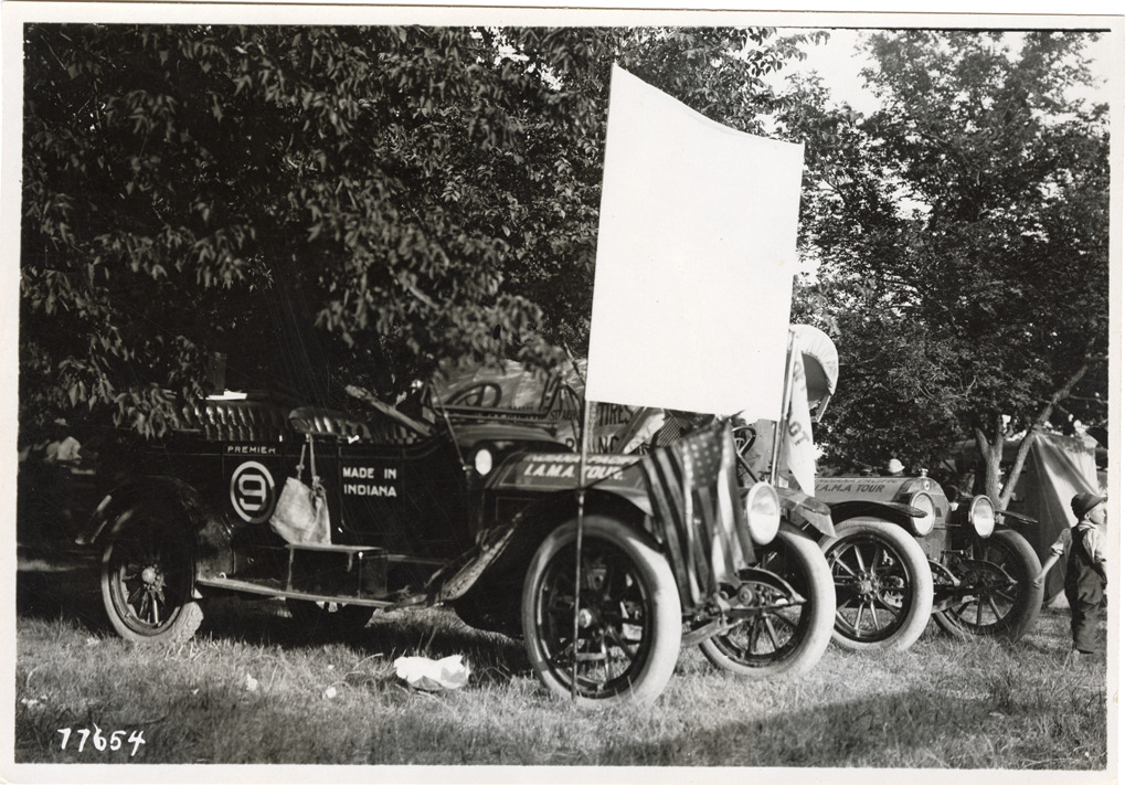 Premier automobile parked on roadside, 1913 Indiana Automobile Manufacturers' Association tour