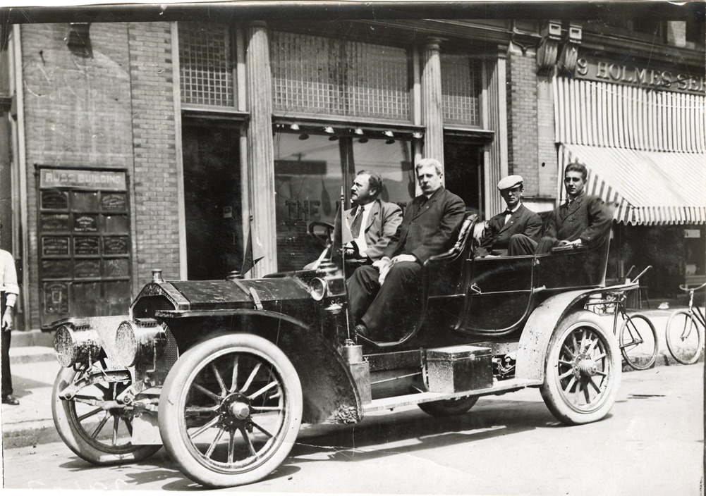 Favorite this☆ Motorists posing in Pullman automobile, 1908 Glidden Tour Description: View of motorists posing in Pullman car during the 1908 Glidden Tour. Handwritten on back: "Pullman, 1908 Glidden." Details Resource ID: na047349 Subject: Pullman automobile Glidden Tour (1908) Automobile driving--Competitions--United States Photographic prints Date Issued: 1908-07 Format: 1 photographic print ; 4.75 x 6.75 in. Member of: National Automotive History Collection Lazarnick Collection Filing Location: General photograph files, Pullman Rights: Physical rights are retained by DPL. Copyright is retained in accordance with U.S. copyright laws.