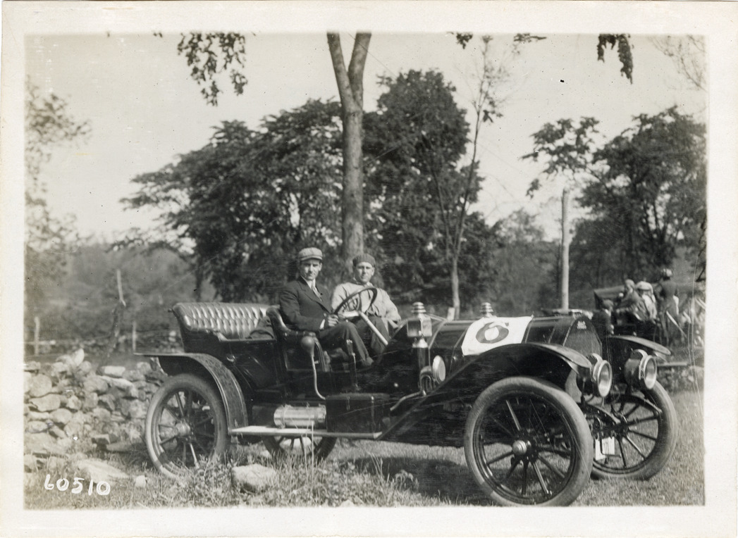 Motorists posing in 1910 Pullman automobile