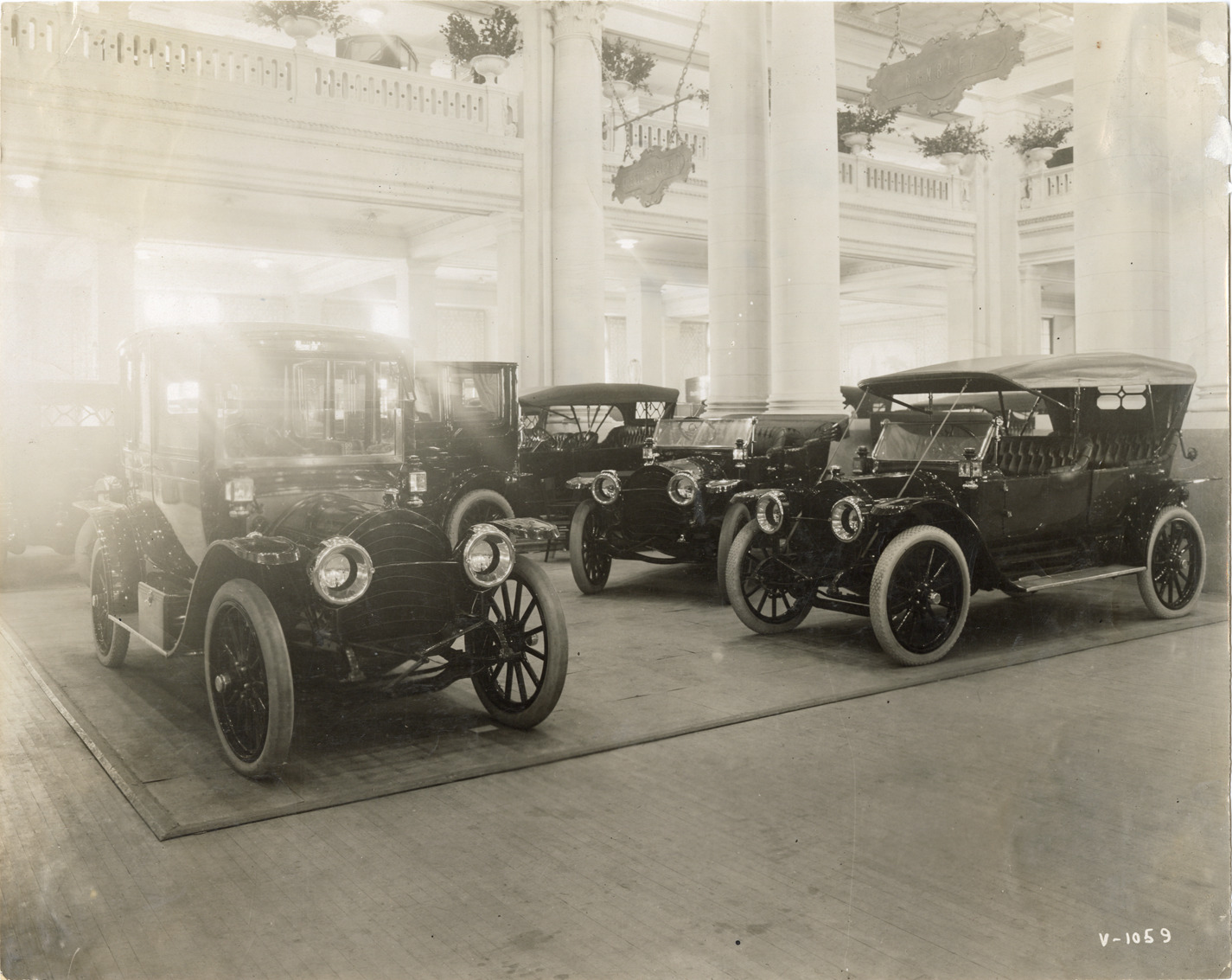 Favorite this☆ 1912 Rambler automobiles at trade show Description: View of 1912 Rambler cars on display at trade show. Stamped on back: "Spooner & Wells, Inc., photographers, telephones 3472-3473 Columbus, 1931 Broadway, New York." Handwritten on back: "Rambler, 1912." Details Resource ID: na047430 Creator: Spooner & Wells Subject: Rambler automobile Trade shows Photographers--New York (State)--New York Photographic prints Date Issued: 1912 (year approximate) Format: 1 photographic print ; 7.5 x 9.75 in. Member of: National Automotive History Collection Lazarnick Collection Filing Location: General photograph files, Rambler, 1911-1913 Rights: Physical rights are retained by DPL. Copyright is retained in accordance with U.S. copyright laws.