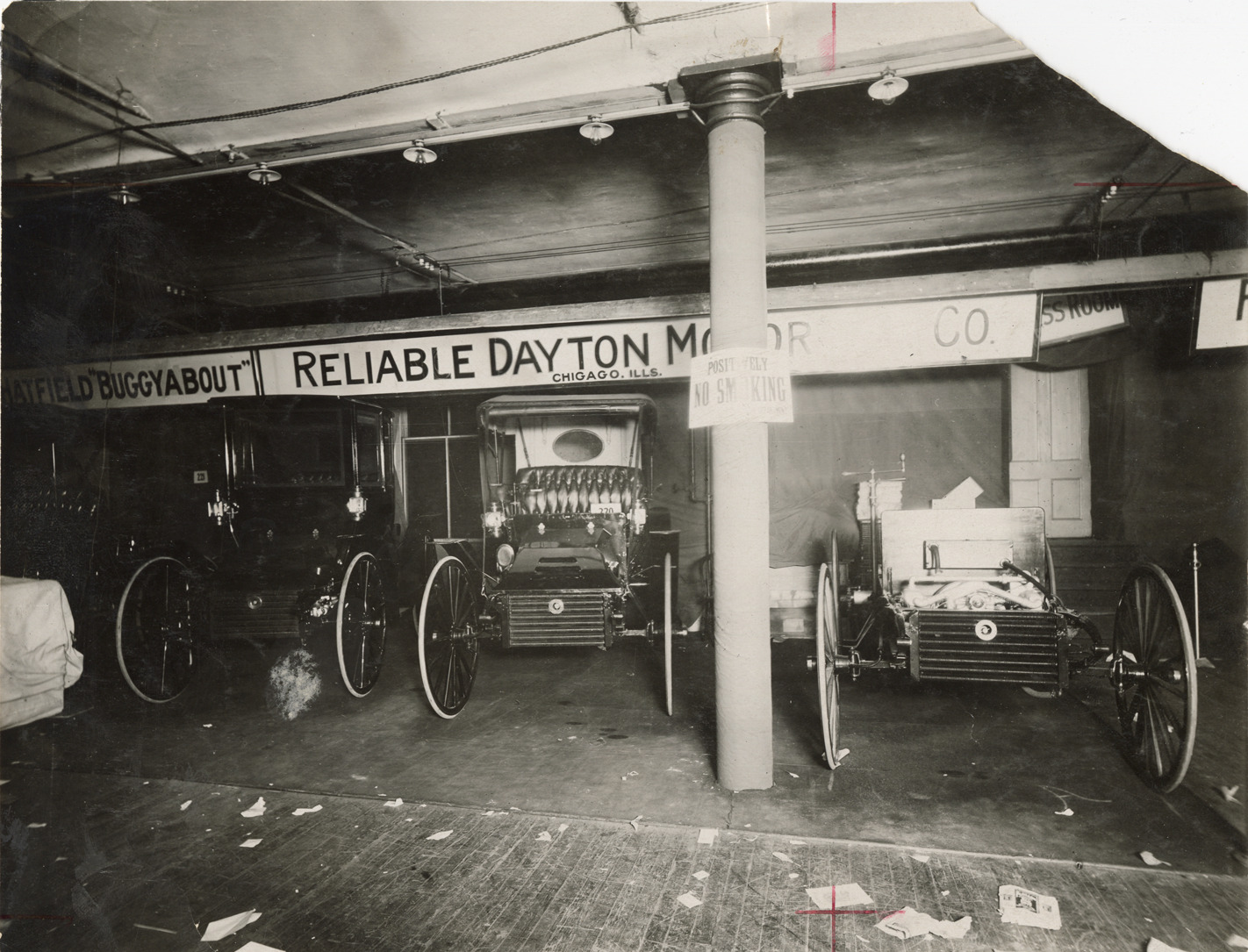 Favorite this☆ 1908 Reliable-Dayton automobiles at trade show Description: View of 1908 Reliable-Dayton cars on display at trade show. "Reliable Dayton Motor Co., Chicago, Ills." sign is displayed in background. Handwritten on back: "Reliable Dayton, 1908." Details Resource ID: na047436 Subject: Automobiles Reliable-Dayton Motor Car Company Trade shows Photographic prints Date Issued: 1908 (year approximate) Format: 1 photographic print ; 7.25 x 9.5 in. Member of: National Automotive History Collection Lazarnick Collection Filing Location: General photograph files, Reliable-Dayton Rights: Physical rights are retained by DPL. Copyright is retained in accordance with U.S. copyright laws.