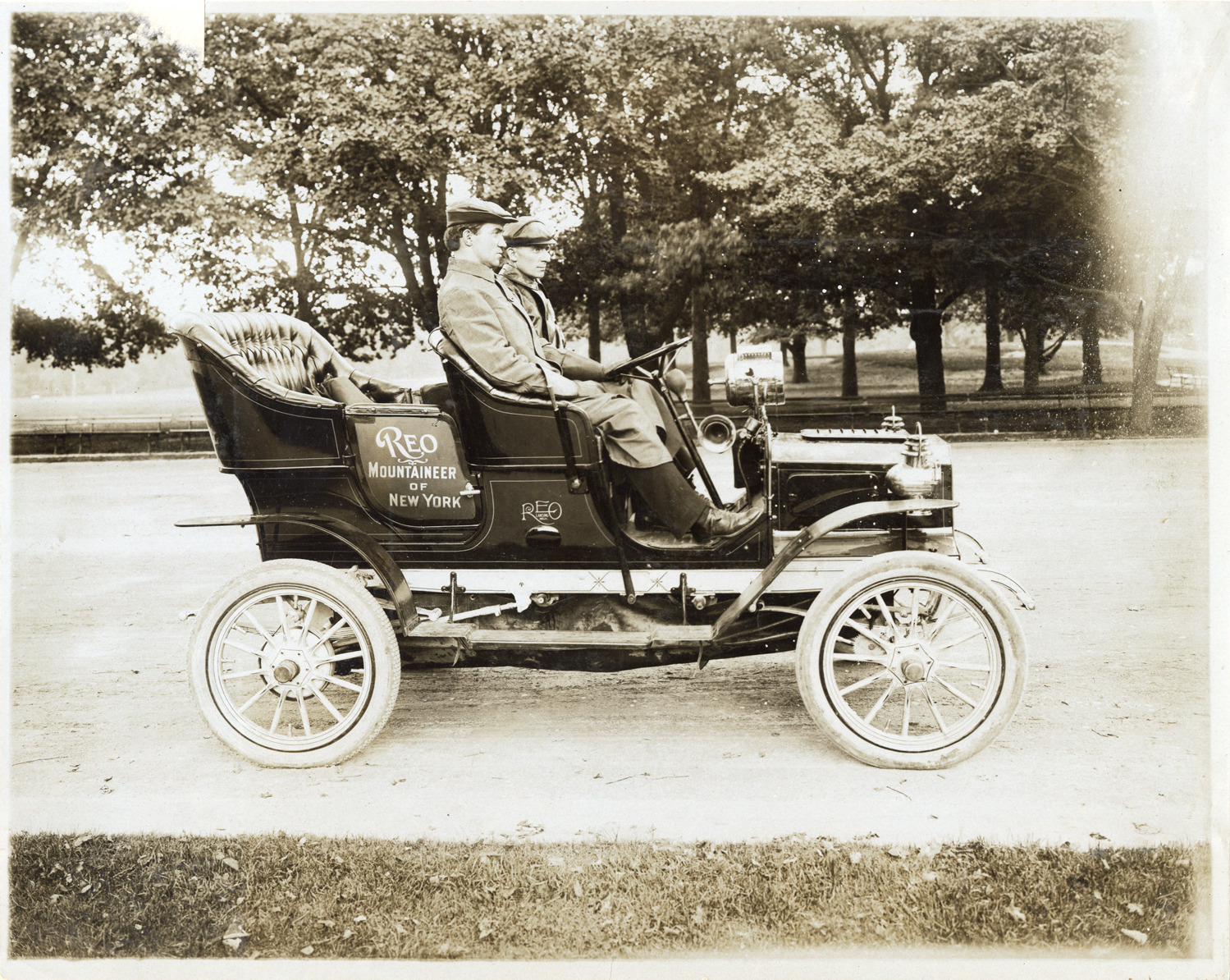 Favorite this☆ Motorists posing in Reo automobile Description: View of motorists posing in a Reo car. "Reo, mountaineer of New York" is painted on rear passenger door. Stamped on back: "Photo by F. Ed. Spooner, 1536 B'way, telephone 6536-38th St., New York, N.Y." Handwritten on back: "Reo, ca. 1906." Details Resource ID: na047503 Creator: Spooner, F. Ed. Subject: Automobiles Reo Motor Car Company Photographers--New York (State)--New York Photographic prints Date Issued: Unknown year Format: 1 photographic print ; 8 x 10 in. Member of: National Automotive History Collection Lazarnick Collection Filing Location: General photograph files, Reo, 1906 Rights: Physical rights are retained by DPL. Copyright is retained in accordance with U.S. copyright laws.