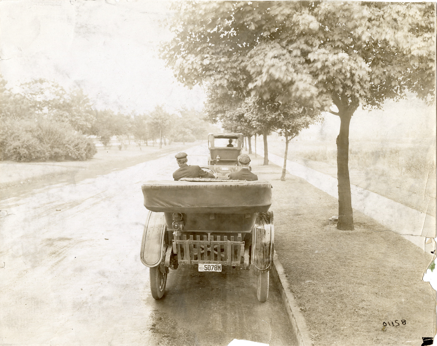 Favorite this☆ Motorists in 1911 Owen automobile Description: Rear view of motorists in a 1911 Owen car. Handwritten on back: "Owen, 1911." Details Resource ID: na047557 Subject: Automobiles Owen Motor Car Company Photographic prints Date Issued: 1910 Format: 1 photographic print ; 7.5 x 9.5 in. Member of: National Automotive History Collection Lazarnick Collection Filing Location: General photograph files, Owen Rights: Physical rights are retained by DPL. Copyright is retained in accordance with U.S. copyright laws.