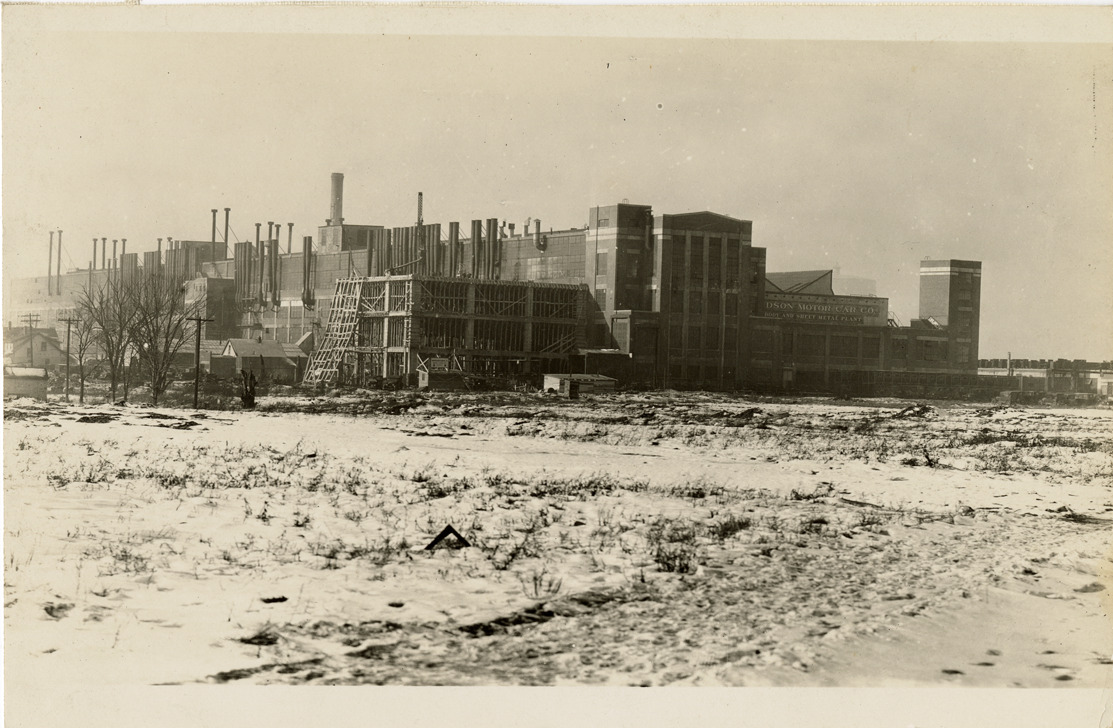Favorite this☆ Hudson Motor Car Company factory Description: View of the Hudson Motor Car Company factory. Snow-covered field in foreground. Details Resource ID: na047568 Subject: Automobile factories--Michigan--Detroit Hudson Motor Car Company Photographic prints Date Issued: Unknown year Format: 1 photographic print mounted on fabric ; 5 x 7.25 in. Member of: National Automotive History Collection Filing Location: Factories--Hudson Motor Car Co. Rights: Physical rights are retained by DPL. Copyright is retained in accordance with U.S. copyright laws.
