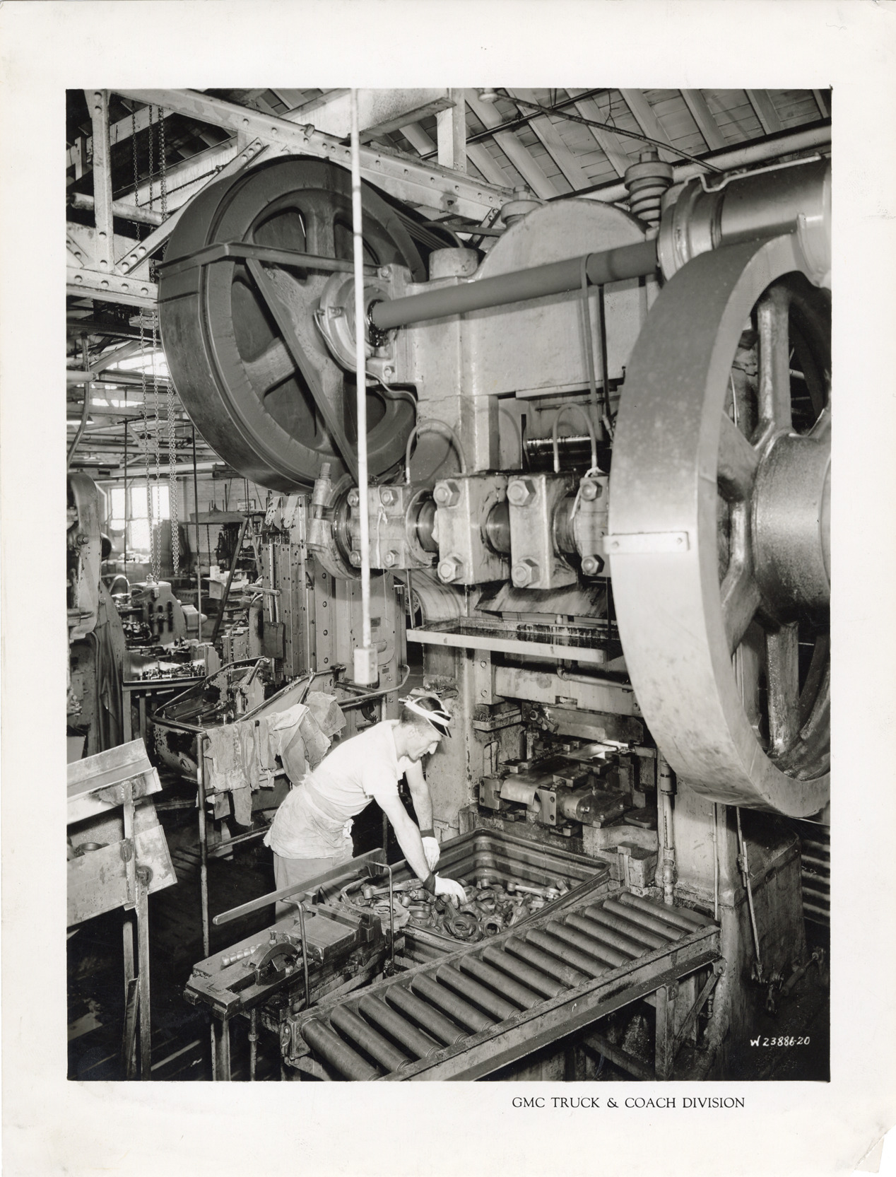 Favorite this☆ Worker operating machinery, GMC Truck & Coach Division factory Description: View of a man operating machinery at the GMC Truck & Coach Division factory. Printed on front: "GMC Truck & Coach Division." Details Resource ID: na047572 Subject: Automobile factories--Michigan--Detroit General Motors Corporation. GMC Truck & Coach Automobile industry workers--Michigan--Detroit Machinery--Michigan--Detroit Photographic prints Date Issued: Unknown year Format: 1 photographic print ; 11 x 8.5 in. Member of: National Automotive History Collection Filing Location: Factories--GMC Rights: Physical rights are retained by DPL. Copyright is retained in accordance with U.S. copyright laws.