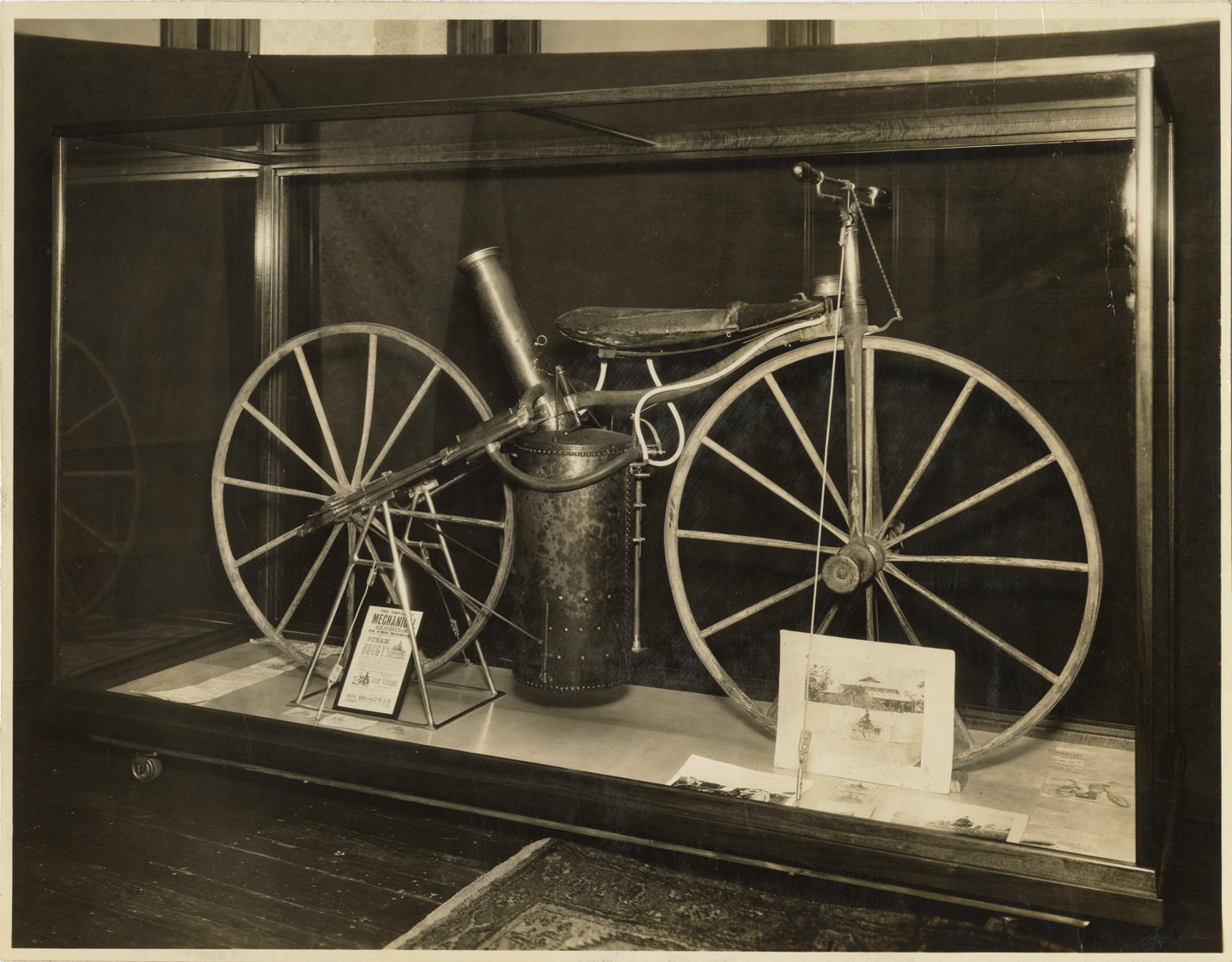 Favorite this☆ 1868 Roper steam velocipede Description: View of an 1868 Roper steam velocipede. Stamped on back: "Geo. E. Lawrence Co., commercial photographers, 47 Winchester St., Boston." Handwritten on back: "1868 Roper steam." Details Resource ID: na047657 Creator: Geo. E. Lawrence Co. Subject: Automobiles, Steam Velocipedes Photographers--Massachusetts--Boston Photographic prints Date Issued: Unknown year Format: 1 photographic print mounted on fabric ; 7.5 x 9.5 in. Member of: National Automotive History Collection Filing Location: Roper Rights: Physical rights are retained by DPL. Copyright is retained in accordance with U.S. copyright laws.