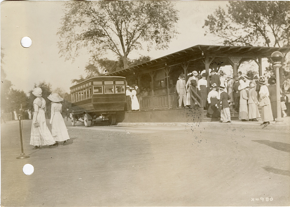 Favorite this☆ Passengers at bus shelter on Belle Isle Description: View of passengers at bus shelter on Belle Isle. Bus is parked next to shelter. Handwritten on back: "On Belle Isle." Details Resource ID: na047711 Subject: Buses Bus shelters Belle Isle Park (Detroit, Mich.) Photographic prints Date Issued: Unknown year Format: 1 photographic print ; 4.5 x 6.5 in. Member of: National Automotive History Collection Lazarnick Collection Filing Location: General photograph files, Traffic--Detroit Rights: Physical rights are retained by DPL. Copyright is retained in accordance with U.S. copyright laws.
