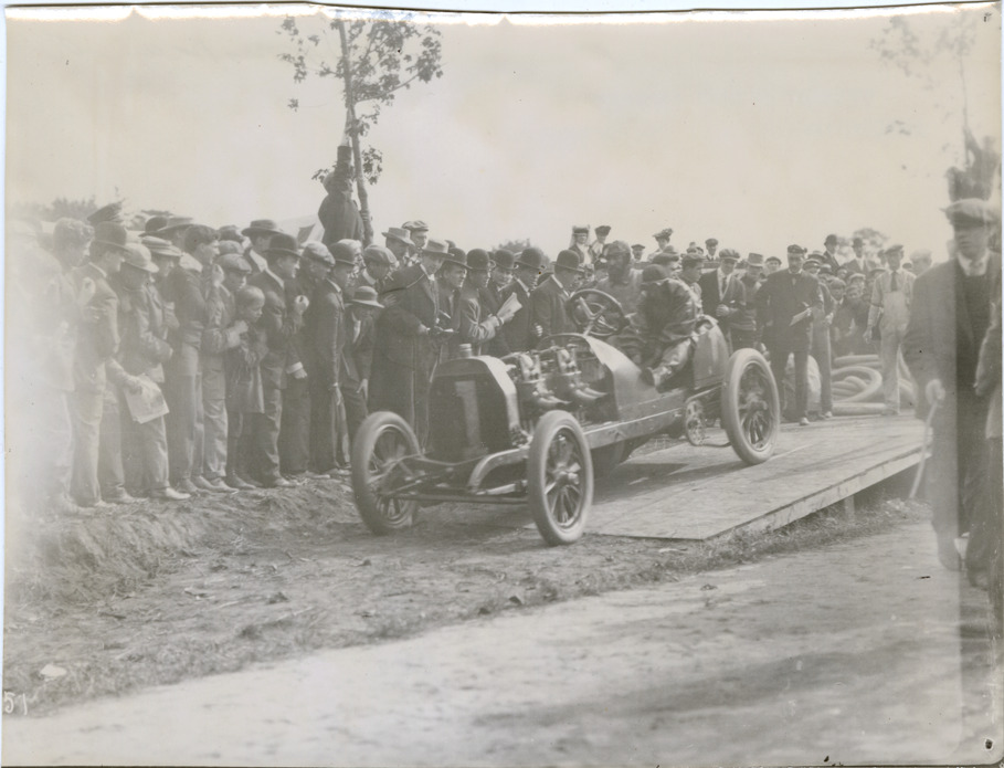 Favorite this☆ Hubert LeBlon in a Thomas racecar, 1906 Vanderbilt Cup races Description: View of Hubert LeBlon in Thomas car no. 1 during the 1906 Vanderbilt Cup races. Spectators on roadside. Handwritten on back: "Thomas racer. LeBlon, Thomas, Vanderbilt 1906." Details Resource ID: na047782 Subject: Automobiles, Racing E.R. Thomas-Detroit Company Vanderbilt Cup Race (1906) Photographic prints Date Issued: 1906 Format: 1 photographic print ; 4.5 x 6 in. Member of: National Automotive History Collection Filing Location: Thomas, 1906 Rights: Physical rights are retained by DPL. Copyright is retained in accordance with U.S. copyright laws.