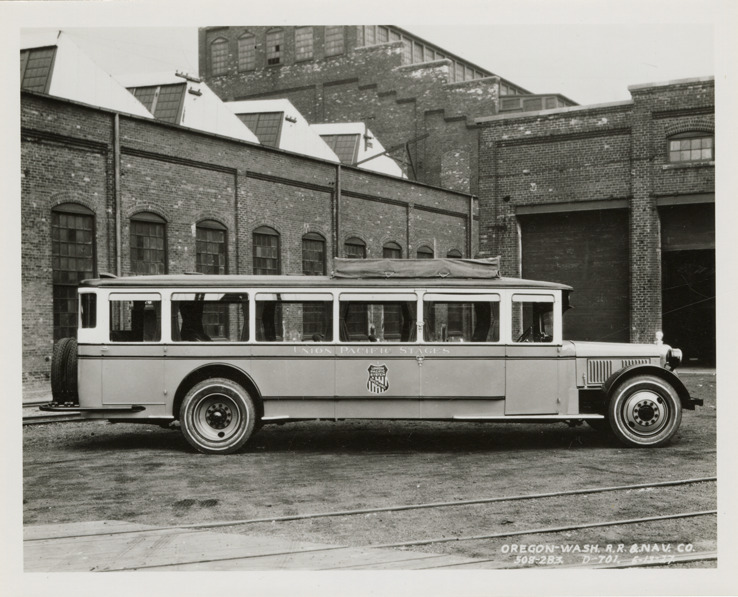 Favorite this☆ ACF bus, Union Pacific Stages Description: View of an ACF bus for Union Pacific Stages. Printed on front: "Oregon-Wash. R.R. & Nav. Co." Handwritten on back: "ACF." Details Resource ID: na047800 Subject: Buses American Car and Foundry Company Photographic prints Date Issued: Unknown year Format: 1 photographic print ; 4 x 5 in. Member of: National Automotive History Collection Filing Location: MS121/VanDegrift, Thomas. 5:1 Rights: Physical rights are retained by DPL. Copyright is retained in accordance with U.S. copyright laws.