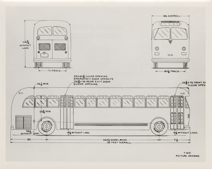 Favorite this☆ Aerocoach Model T-451 bus Description: Drawings and dimensions for an Aerocoach Model T-451 bus. Handwritten on back: "Aerocoach T-451. Picture drawing. 6 cyl. gas." Details Resource ID: na047844 Subject: Buses--Drawings General American Aerocoach Company Photographic prints Date Issued: Unknown year Format: 1 photographic print ; 4 x 5 in. Member of: National Automotive History Collection Filing Location: MS121/VanDegrift, Thomas, 5:3 Rights: Physical rights are retained by DPL. Copyright is retained in accordance with U.S. copyright laws.