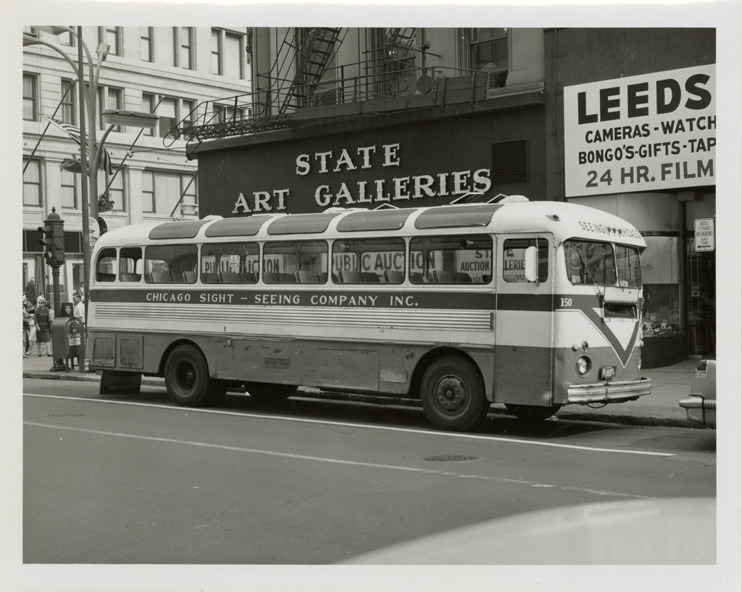View of an Available bus for the Chicago Sight-Seeing Company. Handwritten on back: "Available bus. 7-61."