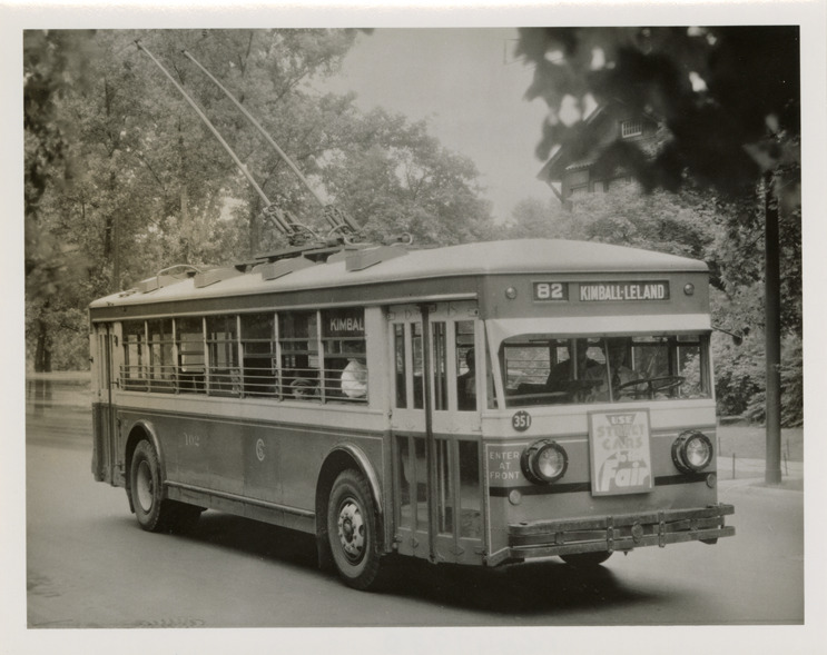 Favorite this☆ Brill trolley bus, Chicago Surface Lines Description: View of a Brill trolley bus for the Chicago Surface Lines. Handwritten on back: "Brill trolley coach. Date of photo: 1933. Chicago Surface Lines 102." Details Resource ID: na047930 Subject: Trolley buses--Illinois--Chicago Buses, Electric--Illinois--Chicago J.G. Brill Company Photographic prints Date Issued: 1933 Format: 1 photographic print ; 4 x 5 in. Member of: National Automotive History Collection Filing Location: MS121/VanDegrift, Thomas, 6:2 Rights: Physical rights are retained by DPL. Copyright is retained in accordance with U.S. copyright laws.