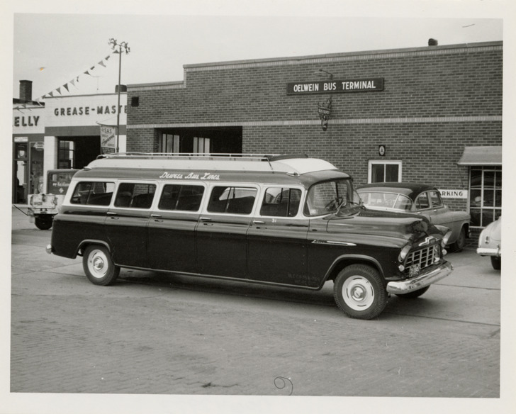 Chevrolet stretchout bus, Dewees Bus Lines, Oelwein, Iowa