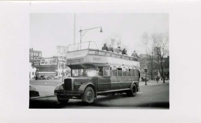 View of a Fifth Avenue Coach Company double-decker bus. Typed on back: "Fifth Avenue Coach Co. #1224."