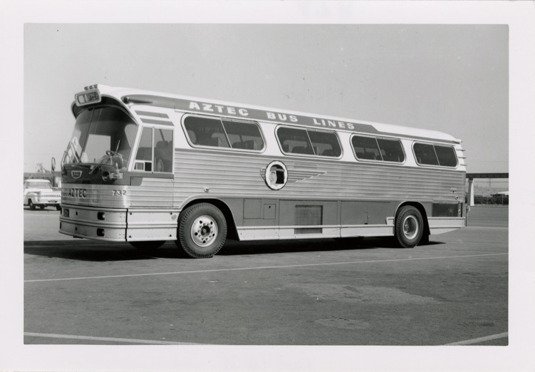 Favorite this☆ 1964 Flxible bus, Aztec Bus Lines Description: View of a 1964 Flxible bus, for the Aztec Bus Lines. Stamped on back: "Andrew R. Harrison, 10917 Choisser St., Whittier, Calif. Photo by: Date: Feb 23, 1964." Handwritten on back: "Flxible, 1964. 41 pass." Details Resource ID: na048178 Creator: Harrison, Andrew R. Subject: Buses Flxible Company Photographers--California--Whittier Photographic prints Date Issued: 1964-02-23 Format: 1 photographic print ; 3.5 x 5 in. Member of: National Automotive History Collection Filing Location: MS121/VanDegrift, Thomas, 7:12 Rights: Physical rights are retained by DPL. Copyright is retained in accordance with U.S. copyright laws.