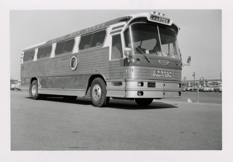 Favorite this☆ 1964 Flxible bus, Aztec Bus Lines Description: View of a 1964 Flxible buses, for the Aztec Bus Lines. Stamped on back: "Andrew R. Harrison, 10917 Choisser St., Whittier, Calif. Photo by: Date: Feb 23, 1964." Handwritten on back: "Flxible, 1964. 41 pass. Oops! Camera moved." Details Resource ID: na048185 Creator: Harrison, Andrew R. Subject: Buses Flxible Company Photographers--California--Whittier Photographic prints Date Issued: 1964-02-23 Format: 1 photographic print ; 3.5 x 5 in. Member of: National Automotive History Collection Filing Location: MS121/VanDegrift, Thomas, 7:12 Rights: Physical rights are retained by DPL. Copyright is retained in accordance with U.S. copyright laws.