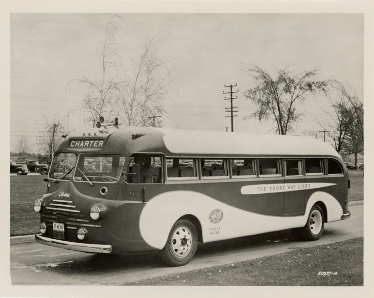 Favorite this☆ 1938 Flxible Clipper bus, Short Way Lines Description: View of a 1938 Flxible Clipper bus for the Short Way Lines. Handwritten on back: "Flxible Clipper, 1938. 25 pass." Details Resource ID: na048190 Subject: Buses Flxible Company Photographic prints Date Issued: Unknown year Format: 1 photographic print ; 4 x 5 in. Member of: National Automotive History Collection Filing Location: MS121/VanDegrift, Thomas, 7:12 Rights: Physical rights are retained by DPL. Copyright is retained in accordance with U.S. copyright laws.