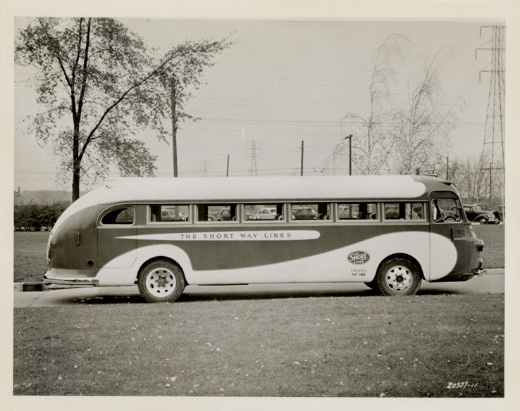 Favorite this☆ 1938 Flxible Clipper bus, Short Way Lines Description: View of a 1938 Flxible Clipper bus for the Short Way Lines. Handwritten on back: "Flxible Clipper, 1938. 25 pass." Details Resource ID: na048192 Subject: Buses Flxible Company Photographic prints Date Issued: Unknown year Format: 1 photographic print ; 4 x 5 in. Member of: National Automotive History Collection Filing Location: MS121/VanDegrift, Thomas, 7:12 Rights: Physical rights are retained by DPL. Copyright is retained in accordance with U.S. copyright laws.