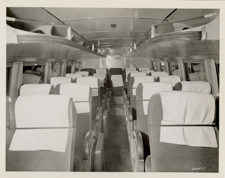 Favorite this☆ Interior, 1938 Flxible Clipper bus, Short Way Lines Description: View of the interior of a 1938 Flxible Clipper bus for the Short Way Lines, showing seats. Handwritten on back: "Flxible Clipper, 1938. 25 pass. Shortway Lines." Details Resource ID: na048193 Subject: Buses--Interiors Buses--Seats Flxible Company Photographic prints Date Issued: Unknown year Format: 1 photographic print ; 4 x 5 in. Member of: National Automotive History Collection Filing Location: MS121/VanDegrift, Thomas, 7:12 Rights: Physical rights are retained by DPL. Copyright is retained in accordance with U.S. copyright laws.