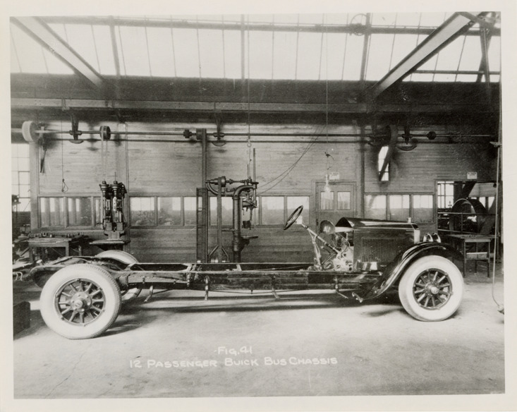 Favorite this☆ Chassis, 1925 Flxible Buick bus Description: View of the Buick chassis for a 1925 Flxible bus. Printed on front: "Fig. 41. 12 passenger Buick bus chassis." Handwritten on back: "Flxible-Buick, 12 pass. 1925." Details Resource ID: na048194 Subject: Buses--Chassis Flxible Company Photographic prints Date Issued: Unknown year Format: 1 photographic print ; 4 x 5 in. Member of: National Automotive History Collection Filing Location: MS121/VanDegrift, Thomas, 7:12 Rights: Physical rights are retained by DPL. Copyright is retained in accordance with U.S. copyright laws.