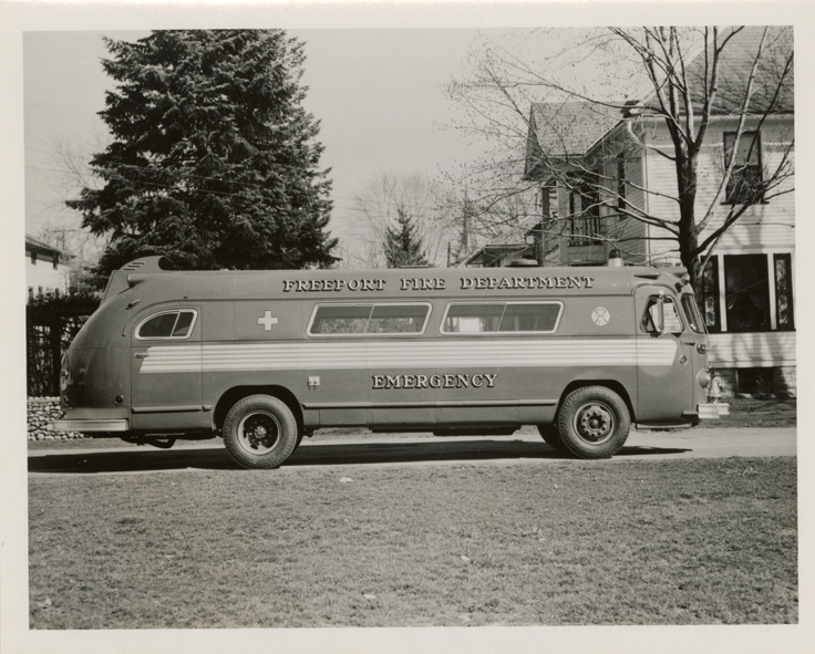 Favorite this☆ 1955 Flxible emergency bus, Freeport Fire Department Description: View of a 1955 Flxible emergency bus for the Freeport, New York fire department. Handwritten on back: "Flxible, 1955. Freeport, NY." Details Resource ID: na048199 Subject: Buses Flxible Company Photographic prints Date Issued: Unknown year Format: 1 photographic print ; 4 x 5 in. Member of: National Automotive History Collection Filing Location: MS121/VanDegrift, Thomas, 7:12 Rights: Physical rights are retained by DPL. Copyright is retained in accordance with U.S. copyright laws.