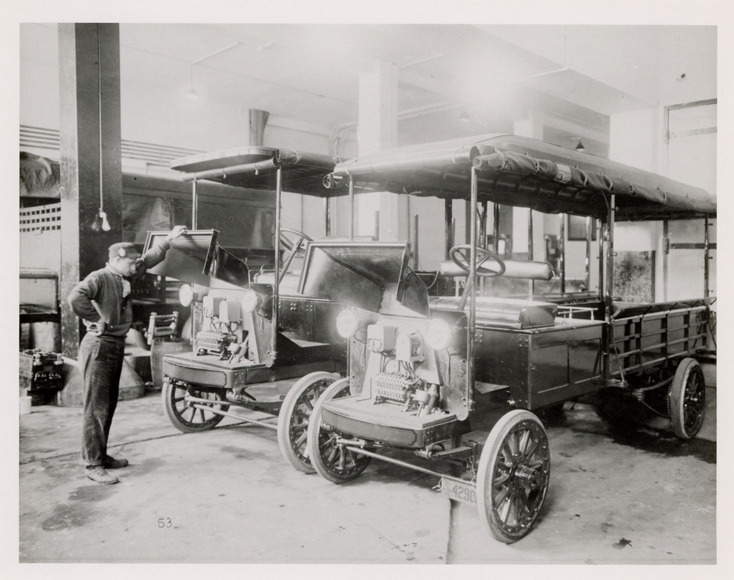 Favorite this☆ Man looking at 1912 GMC electric buses Description: View of man looking at 1912 GMC electric buses. Handwritten on back: "GMC electric, 1912." Details Resource ID: na048290 Subject: Buses, Electric GMC Truck & Coach Photographic prints Date Issued: Unknown year Format: 1 photographic print ; 4 x 5 in. Member of: National Automotive History Collection Filing Location: MS121/VanDegrift, Thomas, 8:4 Rights: Physical rights are retained by DPL. Copyright is retained in accordance with U.S. copyright laws.