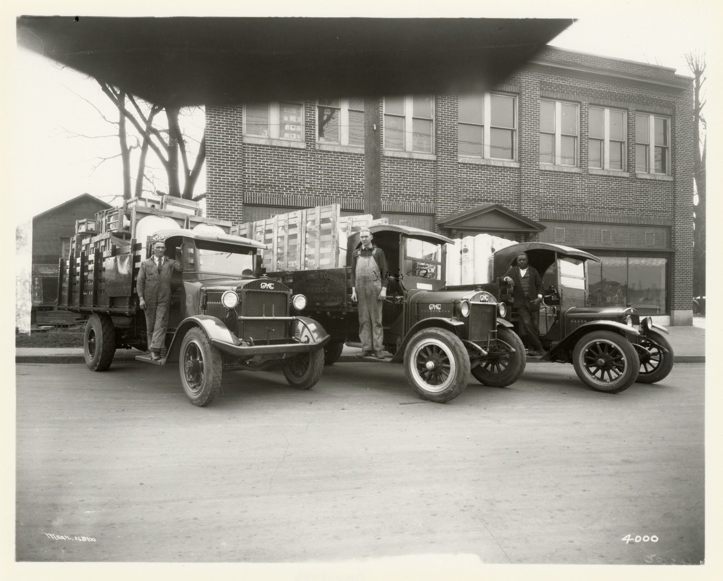Favorite this☆ Drivers posing with GMC trucks Description: View of drivers posing with three GMC trucks. Handwritten on back: "GMC." Details Resource ID: na048486 Subject: GMC trucks Photographic prints Date Issued: Unknown year Format: 1 photographic print ; 8 x 10 in. Member of: National Automotive History Collection Filing Location: MS121/VanDegrift, Thomas, 9:5 Rights: Physical rights are retained by DPL. Copyright is retained in accordance with U.S. copyright laws.