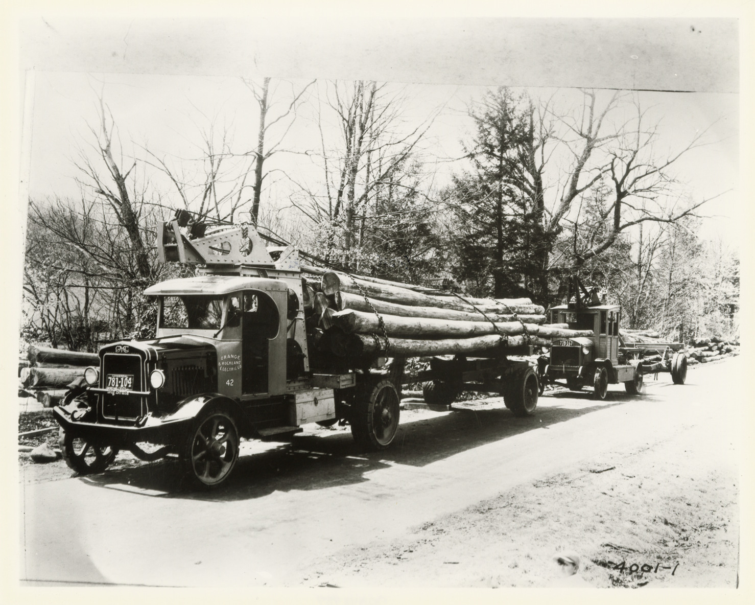 Favorite this☆ GMC Big Brute truck hauling logs, Orange & Rockland Electric Co. Description: View of a GMC Big Brute truck hauling logs for the Orange & Rockland Electric Co. "Orange & Rockland Electric Co." is painted on side of truck. Handwritten on back: "GMC." Details Resource ID: na048489 Subject: GMC trucks Log transportation Photographic prints Date Issued: 1925 Format: 1 photographic print ; 8 x 10 in. Member of: National Automotive History Collection Filing Location: MS121/VanDegrift, Thomas, 9:5 Rights: Physical rights are retained by DPL. Copyright is retained in accordance with U.S. copyright laws.
