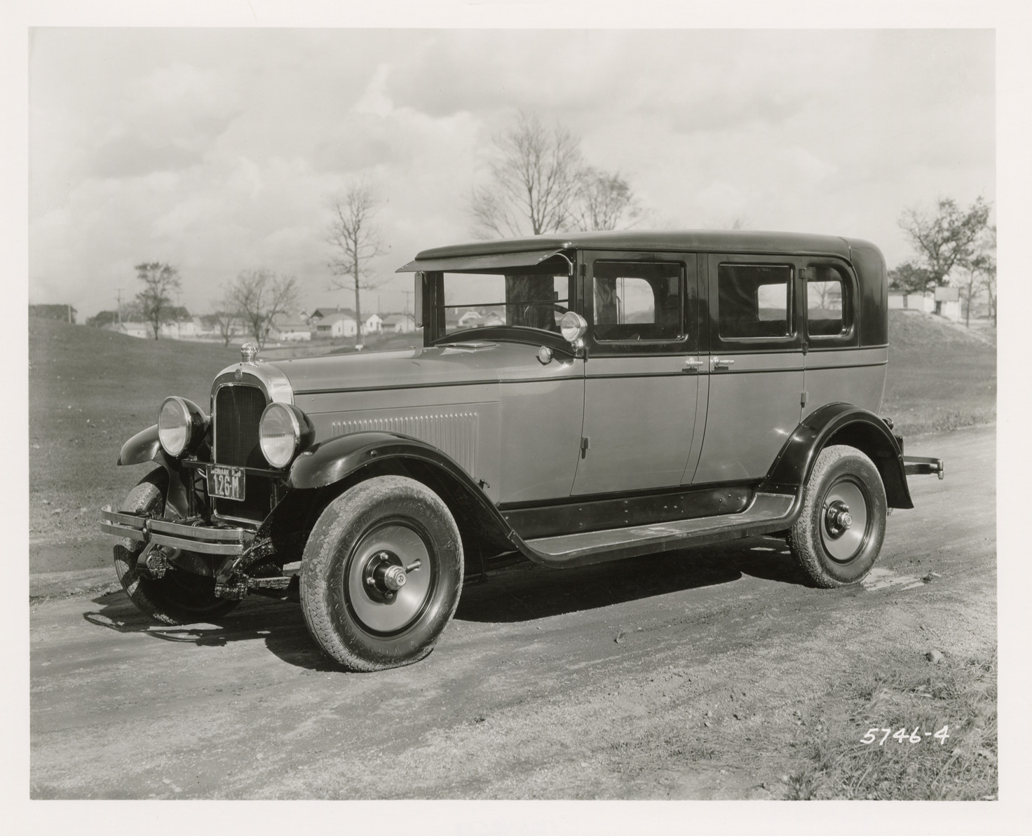 View of a 1928 Yellow Truck and Coach taxi. Handwritten on back: "GM truck. Model 06 chassis. 10-24-28."