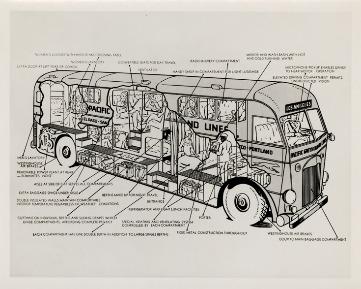 Favorite this☆ Pacific Greyhound bus Description: Artist's depiction of a Pacific Greyhound bus. Features are printed on front. Handwritten on back: "Greyhound Pac Hound. Designed by Dwight Austin. Built about 1933." Details Resource ID: na048630 Subject: Buses--Drawings Greyhound buses Photographic prints Date Issued: Unknown year Format: 1 photographic print ; 4 x 5 in. Member of: National Automotive History Collection Filing Location: MS121/VanDegrift, Thomas, 11:8 Rights: Physical rights are retained by DPL. Copyright is retained in accordance with U.S. copyright laws.