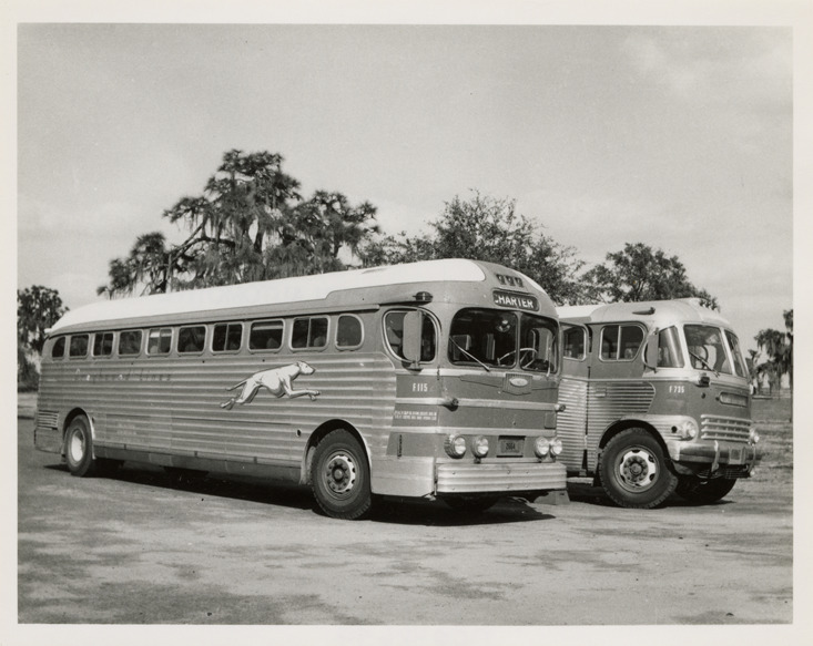 Favorite this☆ Greyhound buses, Florida Description: View of two Greyhound buses in Florida. Handwritten on back: "Greyhound. Fla. G'hound. PD-3751. ACF IC/41." Details Resource ID: na048659 Subject: Greyhound buses Greyhound Lines, Inc. Photographic prints Date Issued: Unknown year Format: 1 photographic print ; 4 x 5 in. Member of: National Automotive History Collection Filing Location: MS121/VanDegrift, Thomas, 11:9 Rights: Physical rights are retained by DPL. Copyright is retained in accordance with U.S. copyright laws.