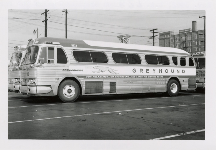 Favorite this☆ Greyhound bus, Los Angeles, California Description: View of a Greyhound bus at Los Angeles, California. Typed on back: "Nov. 1962, L.A. New Greyhound paint job for re-built PD-4104's, to match re-built Scenicruiser." Details Resource ID: na048670 Subject: Greyhound buses Greyhound Lines, Inc. Photographic prints Date Issued: 1962-11 Format: 1 photographic print ; 3.5 x 5 in. Member of: National Automotive History Collection Filing Location: MS121/VanDegrift, Thomas, 11:10 Rights: Physical rights are retained by DPL. Copyright is retained in accordance with U.S. copyright laws.