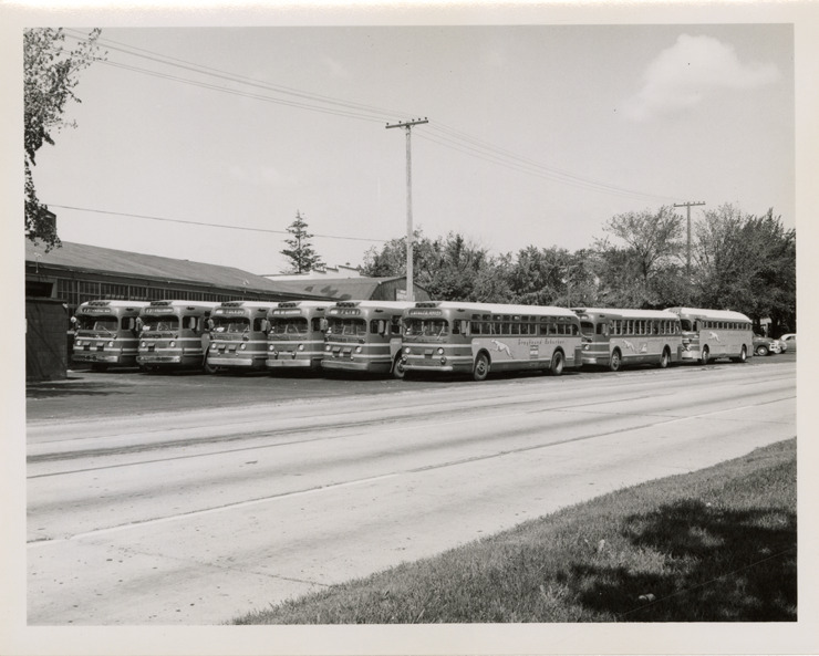 Favorite this☆ Greyhound buses, Birmingham, Michigan Description: View of Greyhound buses at Birmingham, Michigan. Stamped on back: "Aug 1955." Handwritten on back: "Greyhound." Details Resource ID: na048679 Subject: Greyhound buses Greyhound Lines, Inc. Photographic prints Date Issued: 1955-08 Format: 1 photographic print ; 4 x 5 in. Member of: National Automotive History Collection Filing Location: MS121/VanDegrift, Thomas, 11:10 Rights: Physical rights are retained by DPL. Copyright is retained in accordance with U.S. copyright laws.