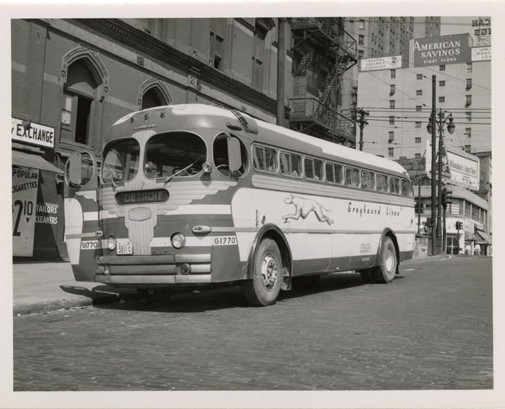 Favorite this☆ Greyhound bus Description: View of a Greyhound bus. Stamped on back: "Jul 1954." Handwritten on back: "Greyhound." Details Resource ID: na048714 Subject: Greyhound buses Greyhound Lines, Inc. Photographic prints Date Issued: 1954-07 Format: 1 photographic print ; 4 x 5 in. Member of: National Automotive History Collection Filing Location: MS121/VanDegrift, Thomas, 11:11 Rights: Physical rights are retained by DPL. Copyright is retained in accordance with U.S. copyright laws.