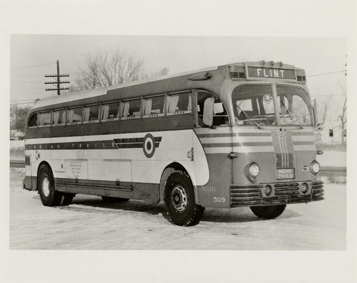 Favorite this☆ Indian Trails bus, Owosso Flint Bus Lines Description: View of an Indian Trails bus for the Owosso Flint Bus Lines. Handwritten on back: "Indian Trails. Owosso Flint Bus Lines." Details Resource ID: na048724 Subject: Buses Indian Trails, Inc. Photographic prints Date Issued: Unknown year Format: 1 photographic print ; 4 x 5 in. Member of: National Automotive History Collection Filing Location: MS121/VanDegrift, Thomas, 11:12 Rights: Physical rights are retained by DPL. Copyright is retained in accordance with U.S. copyright laws.